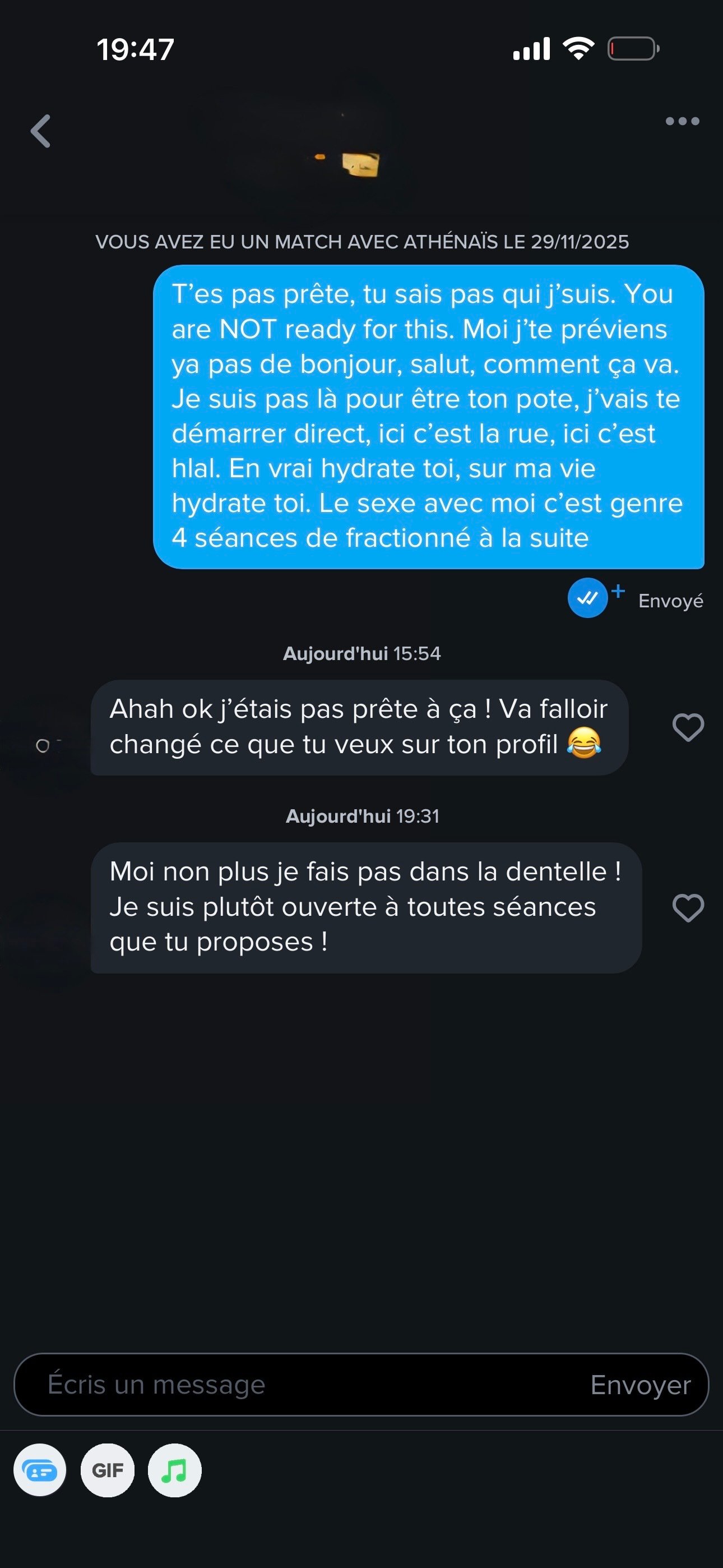 "Cc la miss c lourd ici (tinder) 🥴 on décale crazy (dans ma chambre) ? 😏
