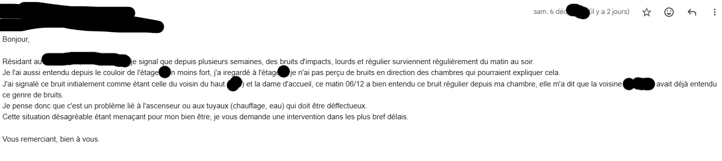 La cuisine collective de l'étage fermée presque chaque week-end parce que l'évier est bouché