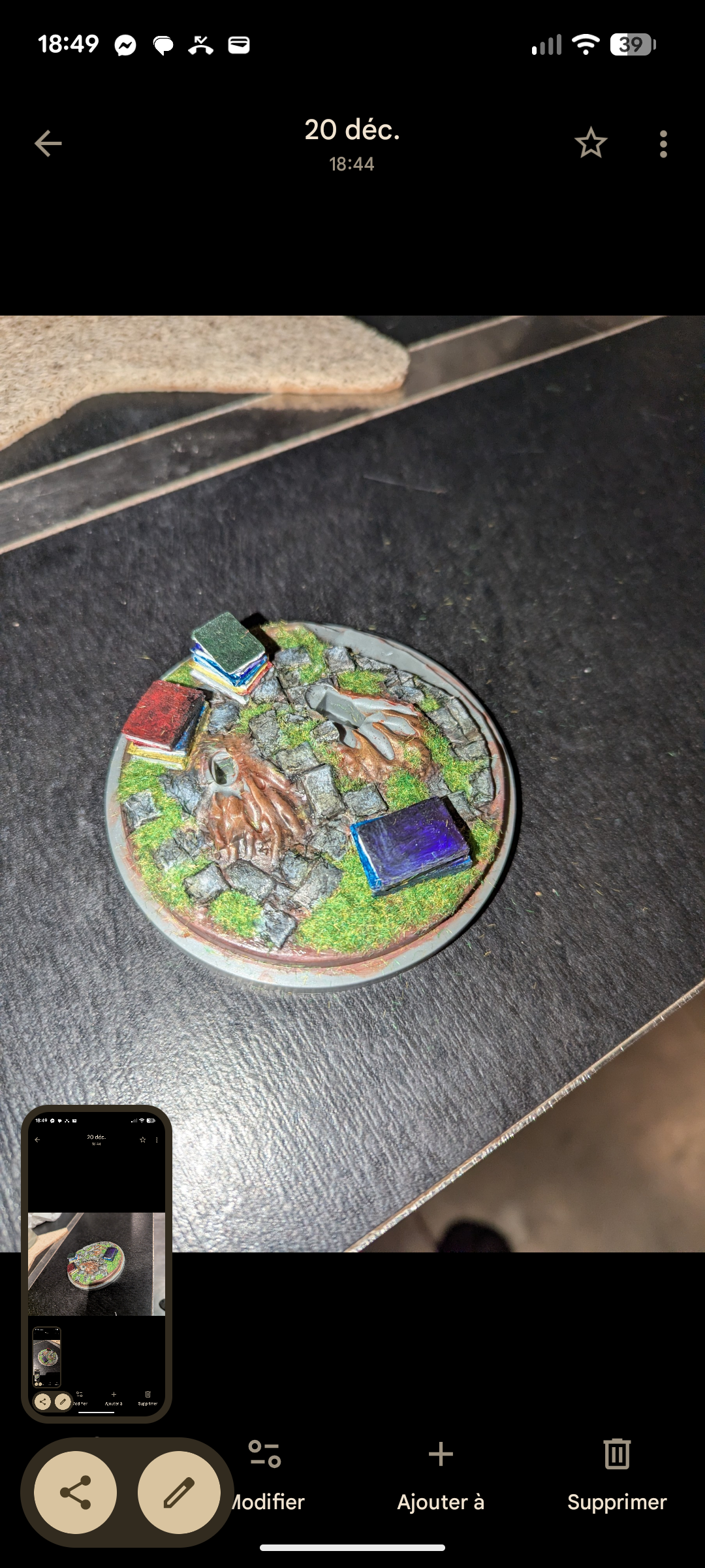L'herbe est collée je vais tenter de rattraper le tout demain !Comme je t'ai dit j'utilise une peinture bas de gamme qui est un peu pâteuse, difficile de faire avec même sans que ça fasse des boules de peintures sur le plastique... !