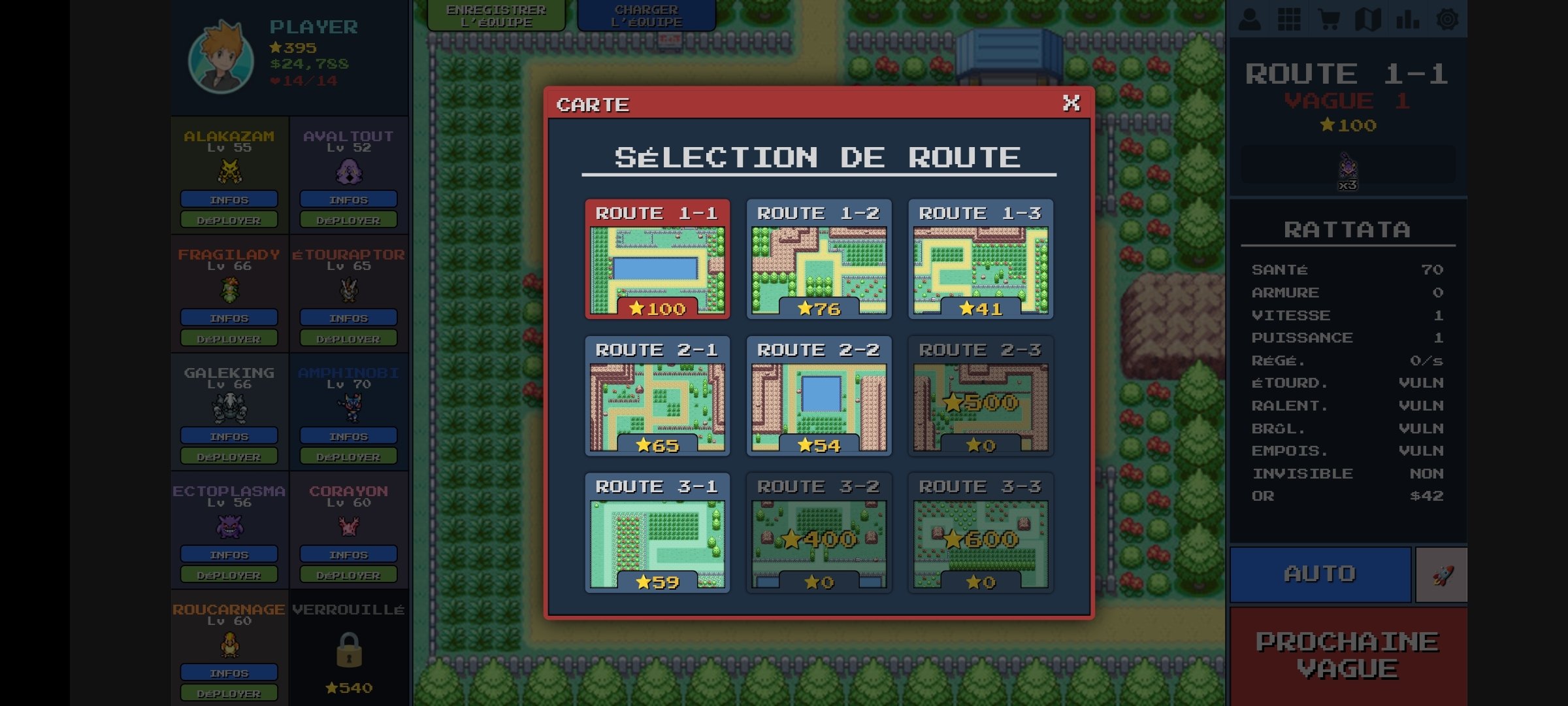 Ensuite sur le end game le lvl 100 des Pokémons ne suffit plus et il faut bien réfléchir à la synergie par rapport aux maps et aux ennemis qui diffèrent à chaque vague