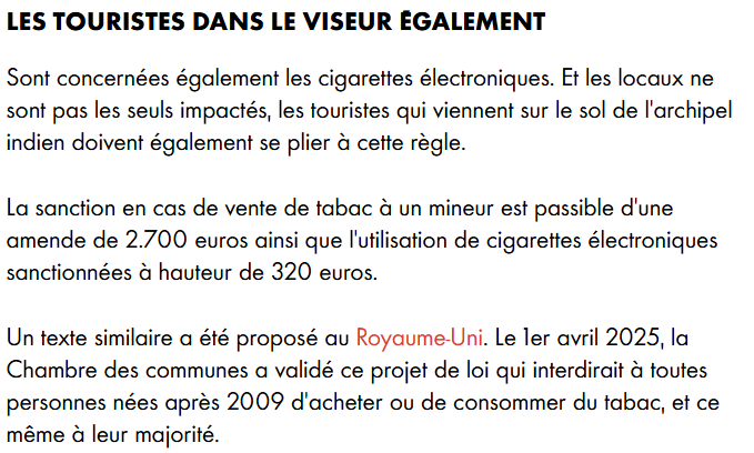 Désormais les gens nés en 2007 ou après ont tout simplement l'interdiction de fumer, et ce à vie.