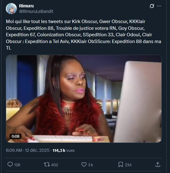 Oui oui aucune trace de haine des blancs alors que le hashtag des rageux c'était "Gwer obscur"
