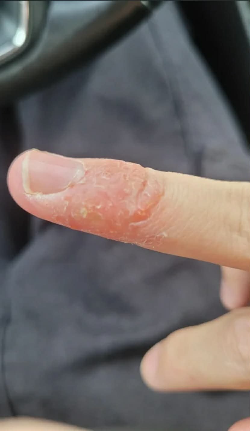Mais c'est quand ma mère a vu mon doigt qui m'a dit d'aller voir un médecin plutôt. Afin d'avoir une ordonnance rapidement, j'ai consulté un médecin en ligne et celui-ci m'a affirmé que c'était de la "dyshidrose". Je n'avais jamais entendu ce mot et je n'avais pas conscience de l'enfer de celui-ci.