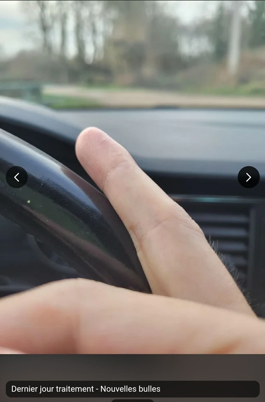 Hier c'était mon dernier jour de traitement et je me suis réveillé avec a nouveau de petites bulles sur toute la longueur du bout de mon doigt, encore une fois, rempli de liquide qui ne demande qu'à péter, mais je résiste.