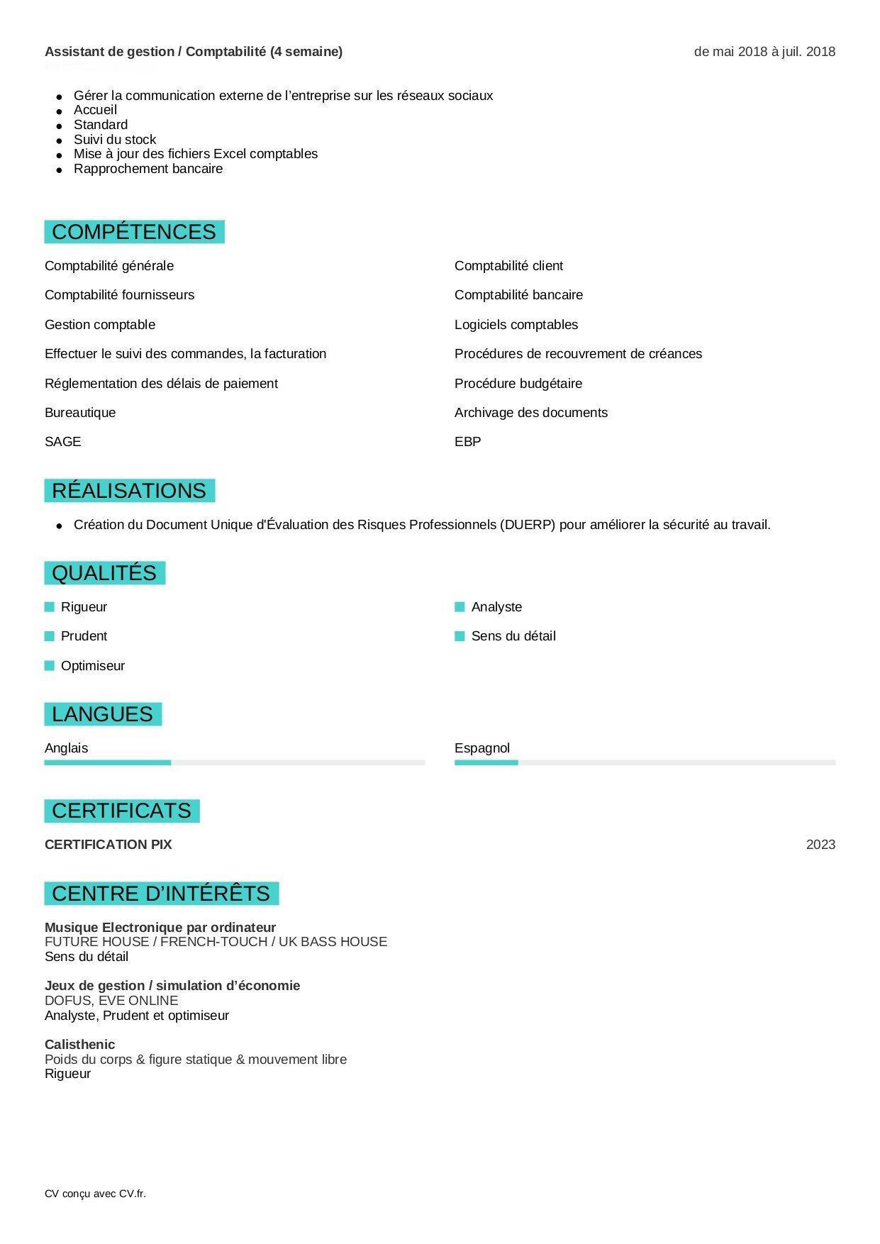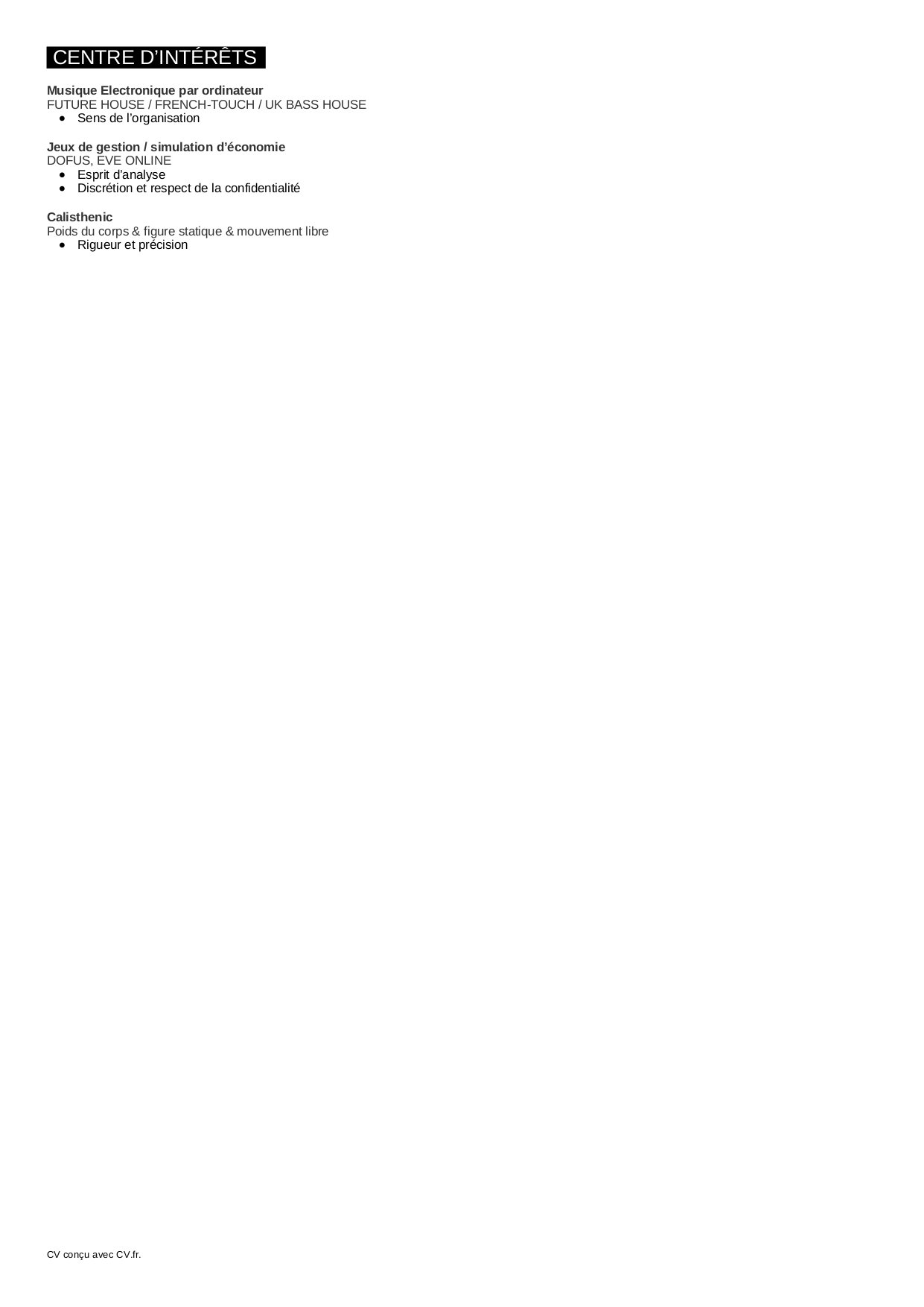 Ajoutes-y COMPETENCES" LANGUES QUALITES LOGICIELS et t'as un CV complet, lisible et basta.