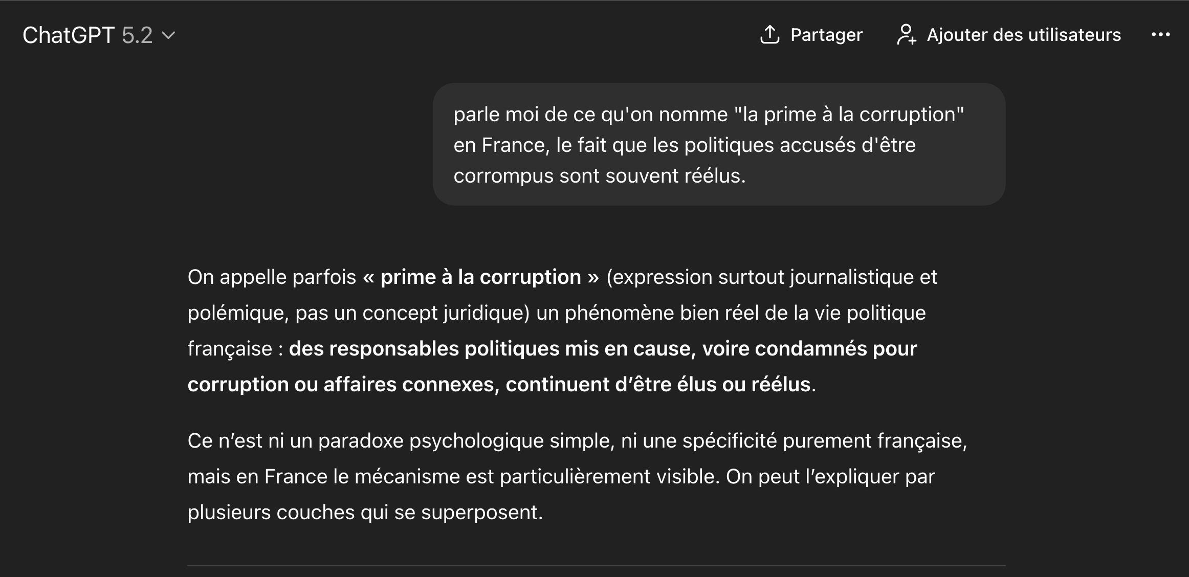 Peu importe: les gens ont voté massivement pour lui car toute la gauche le traitait de débile mental simplet menteur et corrompu... Les gens adorent les débile mental simplet menteur et corrompu... Ce que ChatGPT ne comprends pas, c'est la grande spécifité française qui se nomme: se qui se nomme: "La prime plus un politique est débile mental simplet menteur et corrompu plus il est réélu. Exemple: les Balkanis.