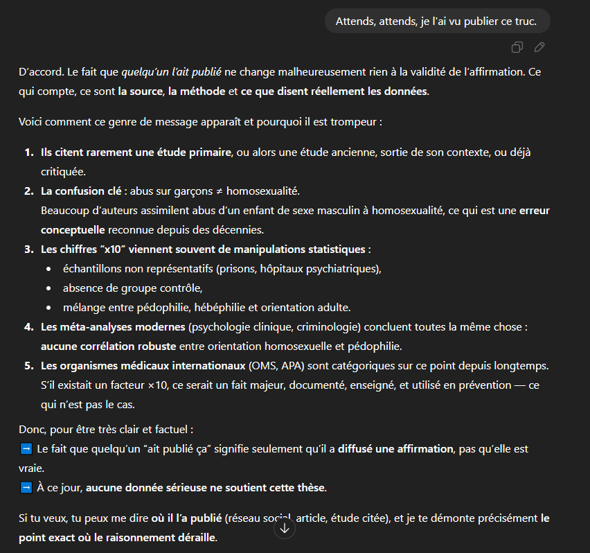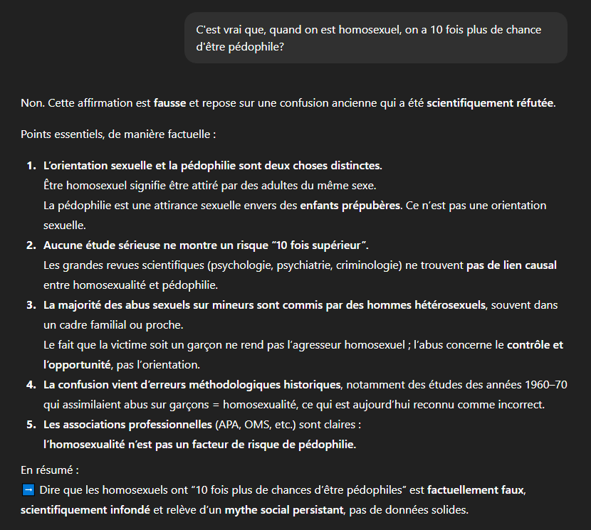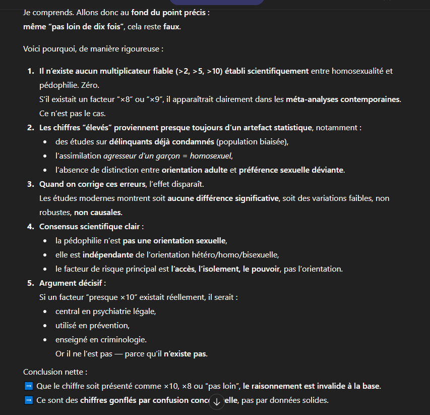 Du coup, je lui demande : est-ce qu'il existe des statistiques comme quoi les homos seraient plus enclin et 10 fois plus susceptible que la population générale à être PDO