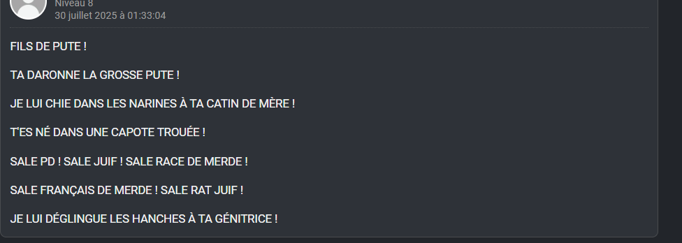 >> Je me suis moqué gentiment juste une fois et il a pété un câble, il envoie des MP comme ça à tout le monde