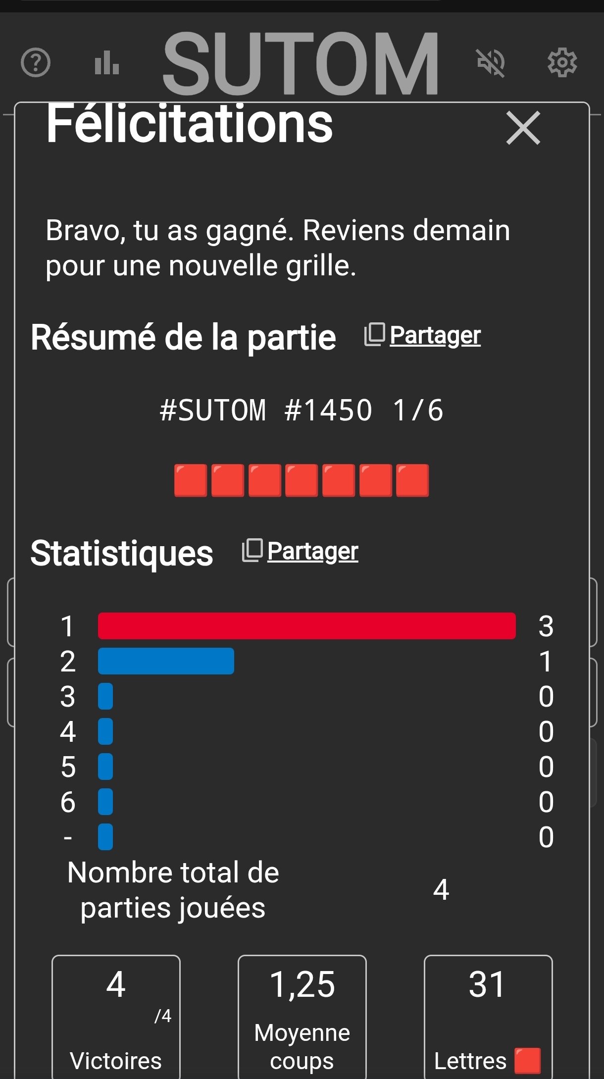 🟡 Statistiques de #SUTOM 🟡1/6 - 🟥🟥🟥🟥🟥🟥🟥🟥 2