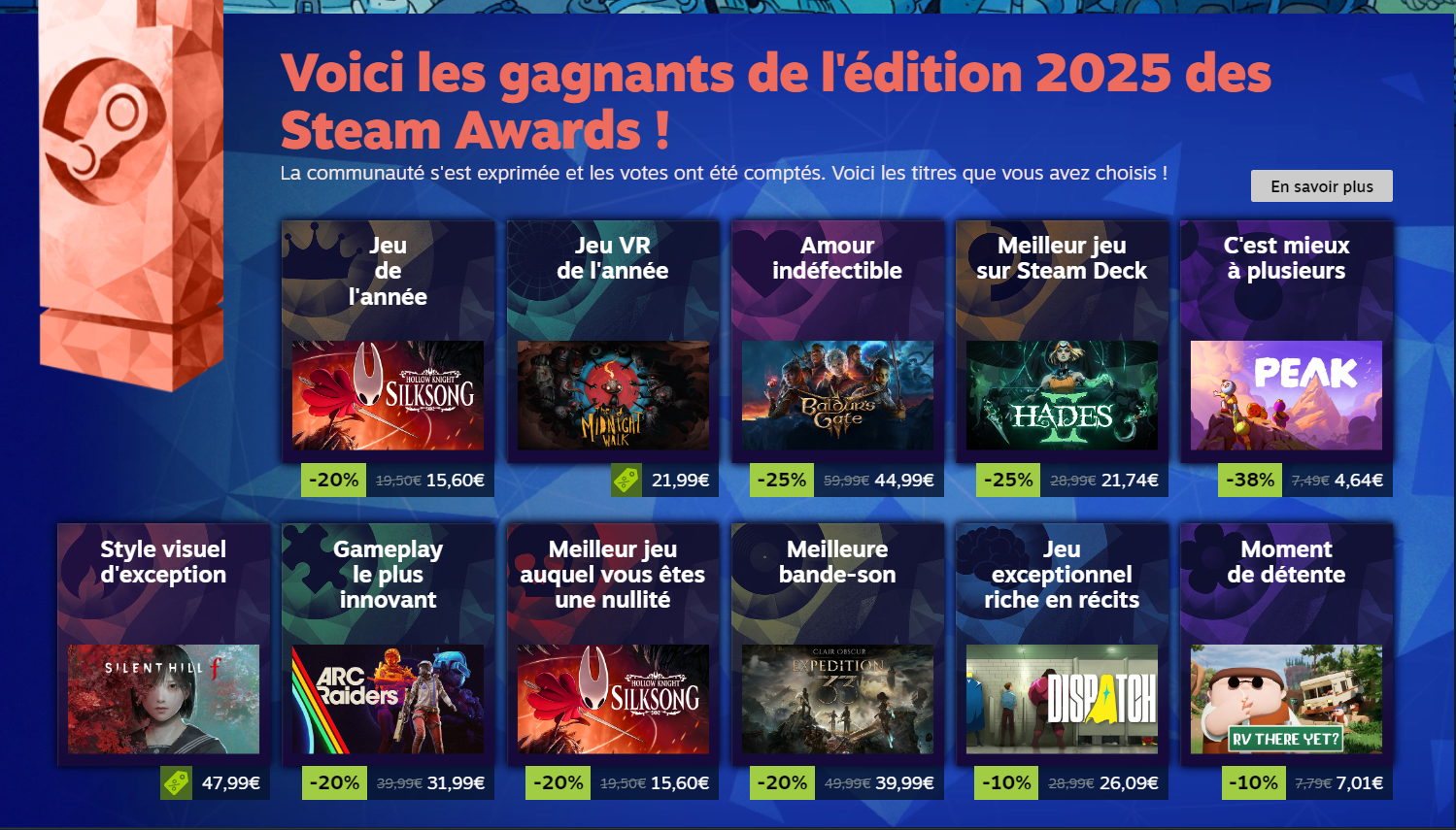 C'est normal le classement steam c'est un classement de "vrais joueurs" et en plus c'est le public qui vote.La cérémonie des games awards ce sont uniquement des professionnels comme Julien Chièze qui votent.