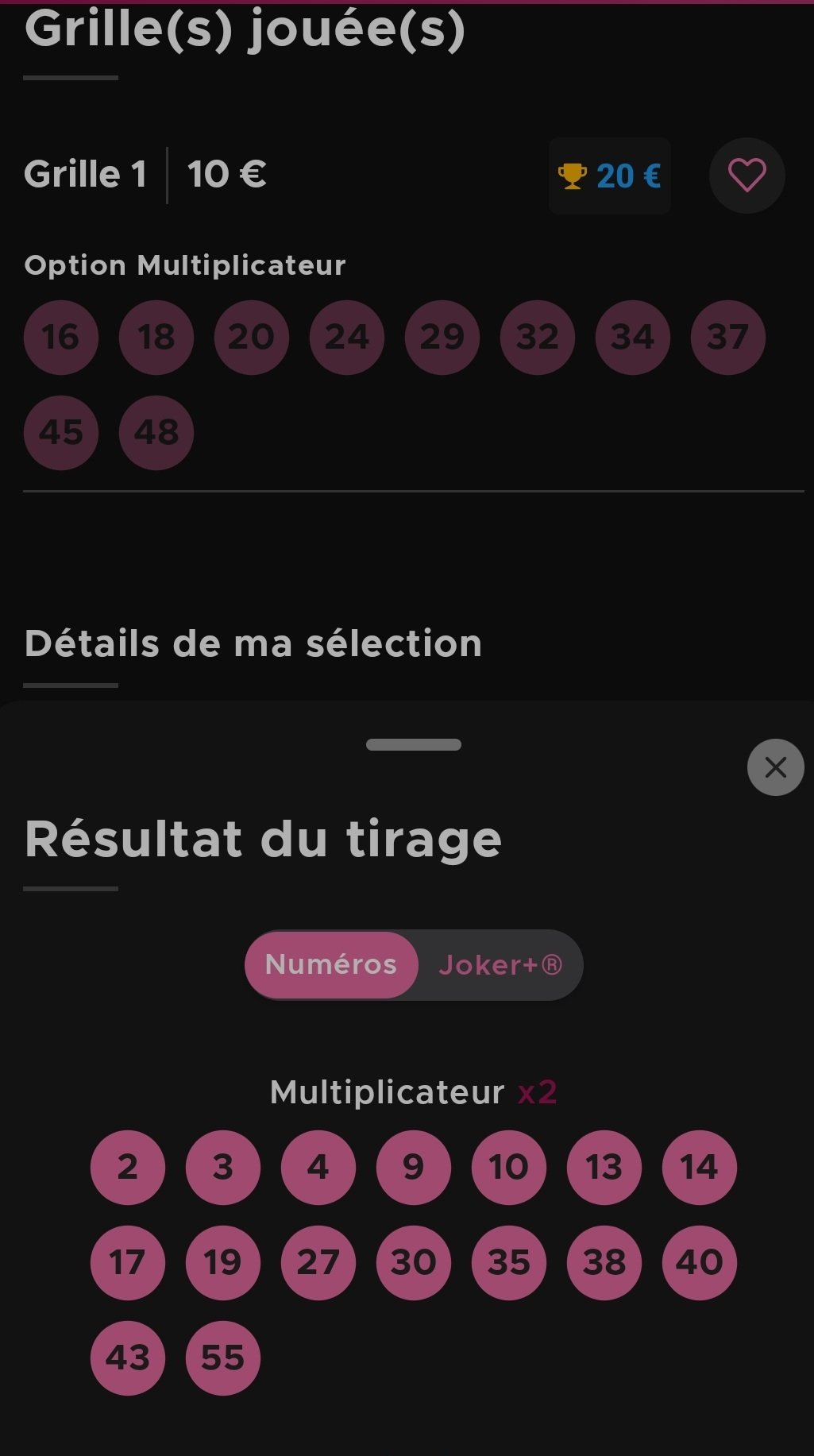 Non c'est normal, si tu avais eu ne serait-ce que un numéro t'aurais eu 0€, c'est un exploit d'avoir 0 bon numéro sur 10 choisis parmi je sais plus combien, une soixantaine