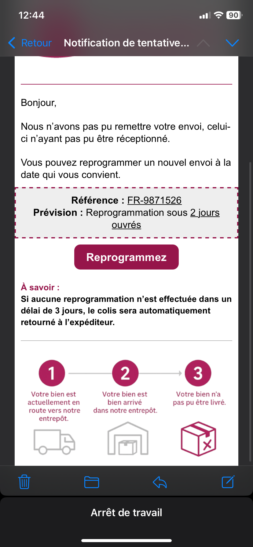 Ce matin en me levant je vois que j’ai un email de « mondial Relay » me disant que mon colis n’avais pas pus être livré, l’e-mail semblait legit