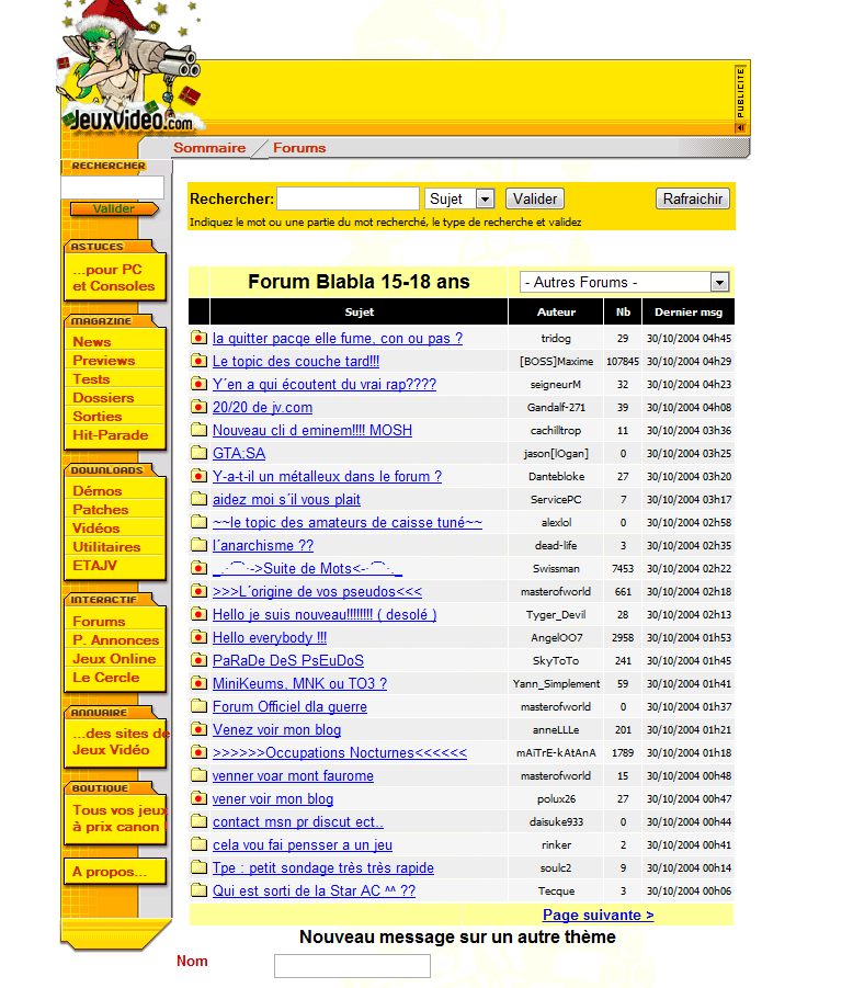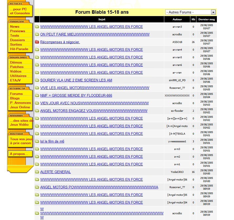 J'avais 10 ans à l'époque et je squattais des forums de jeux comme Need For Speed Underground ou GTA Vice City... le bon temps