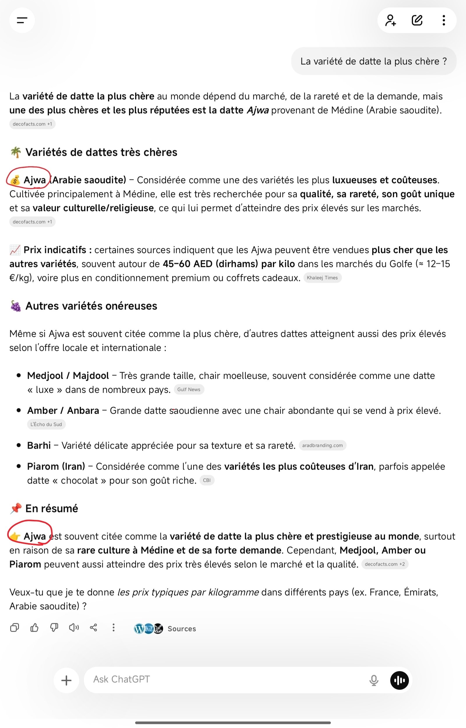 Des ajwa fraiches par contre, faut que c'est mentionné routab sur la boiteRiches en potassium, magnesium, fer, zinc, vitamine B ...