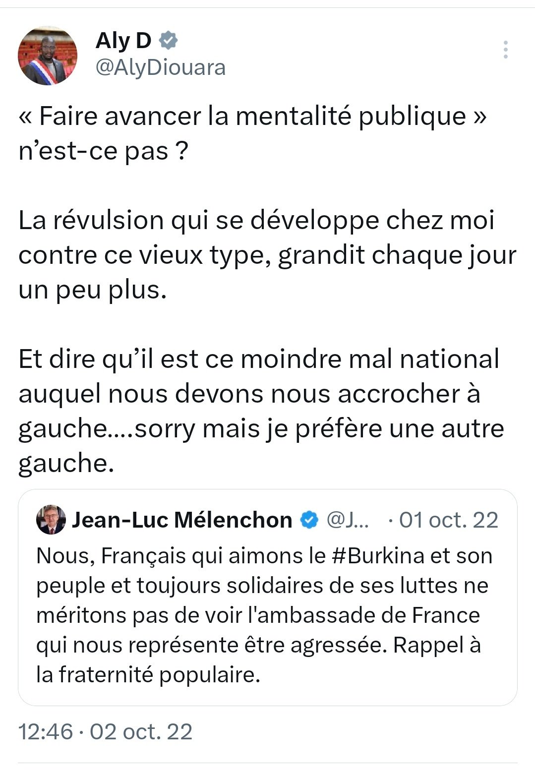 Aly Diouara prend la tête de la contestation :Il attaque frontalement Mélenchon car ce dernier critique un pays africain