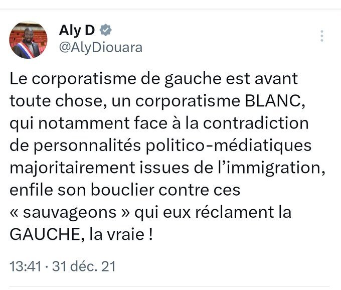 Il reproche à la gauche d'avoir des représentants blancs