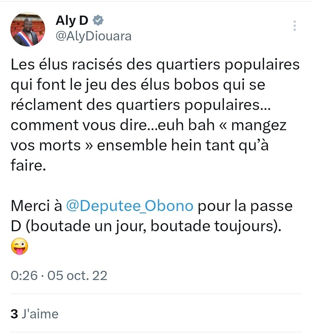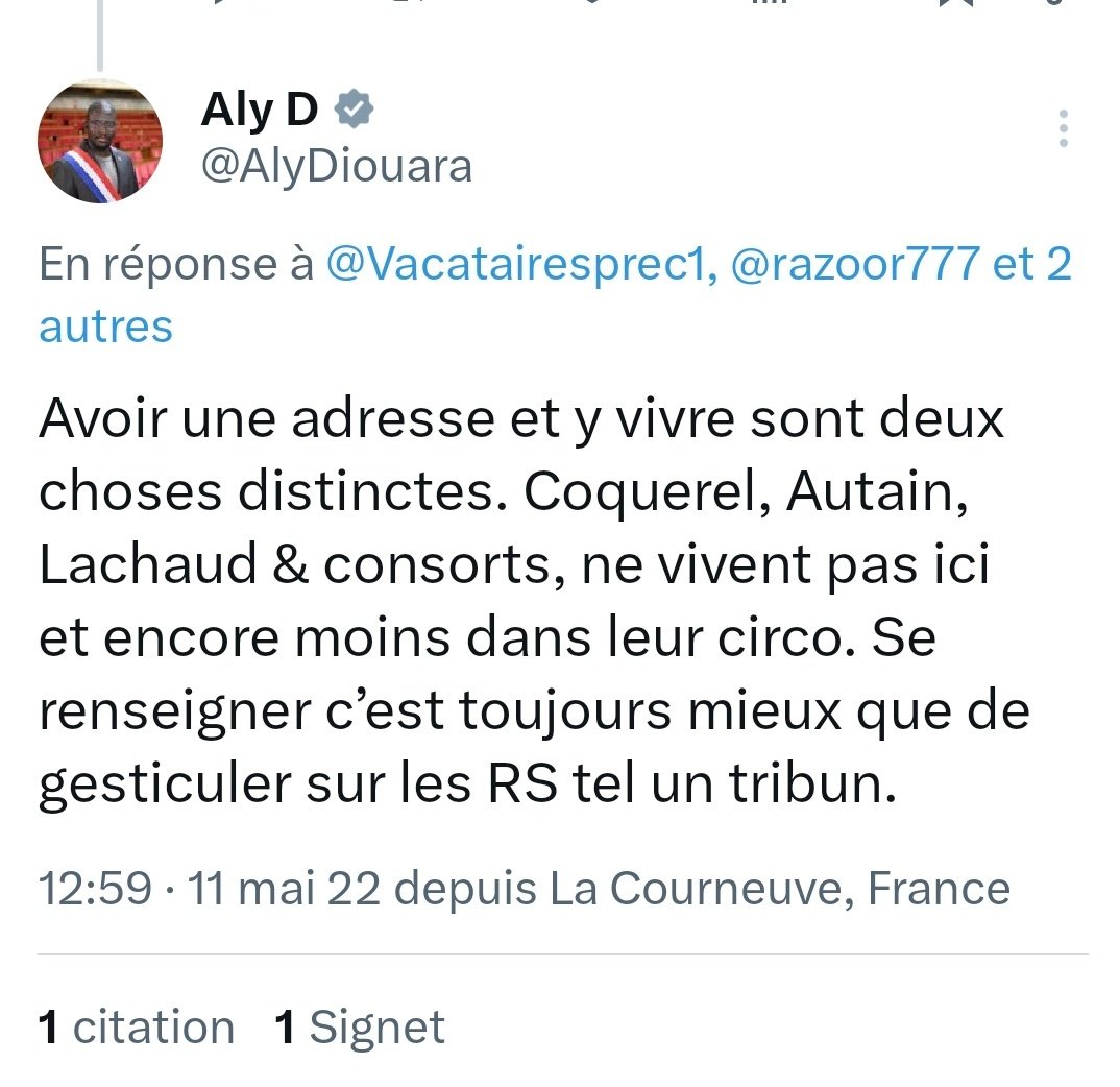 Il fait un big up à Taha Bouafs et Rachel Keke, les seuls légitimes à ses yeux au parlement...