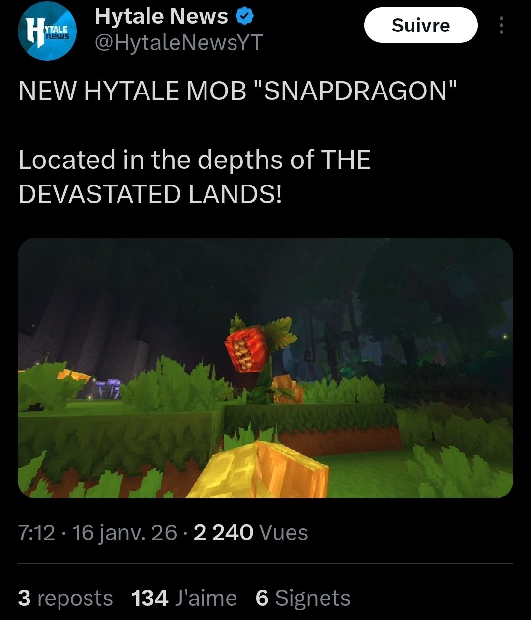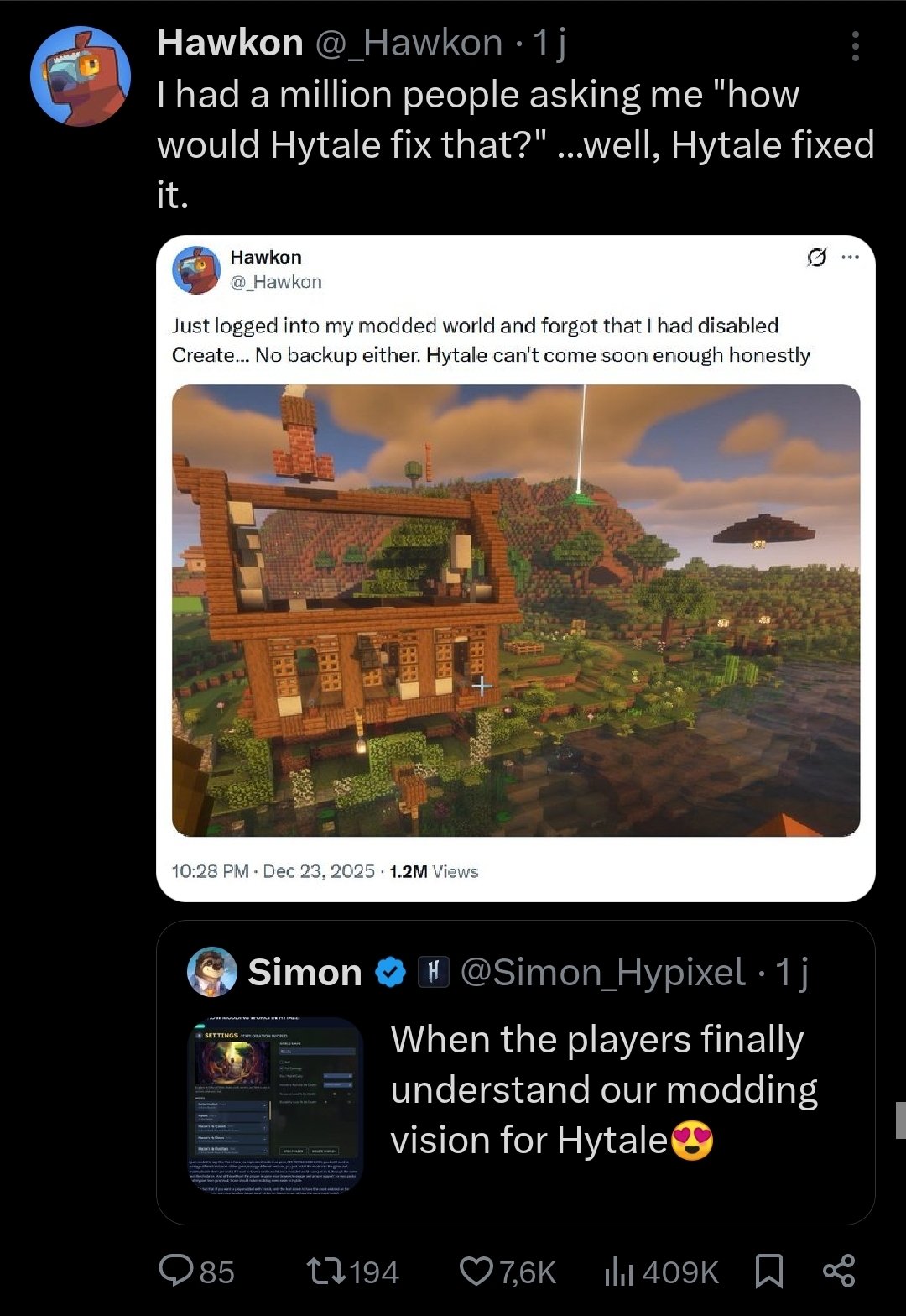 C'est que des exemples qui me viennent en tête, mais concrètement dans 1 an y'aura plus trop de raisons de jouer à Minecraft plutôt qu'à Hytale.