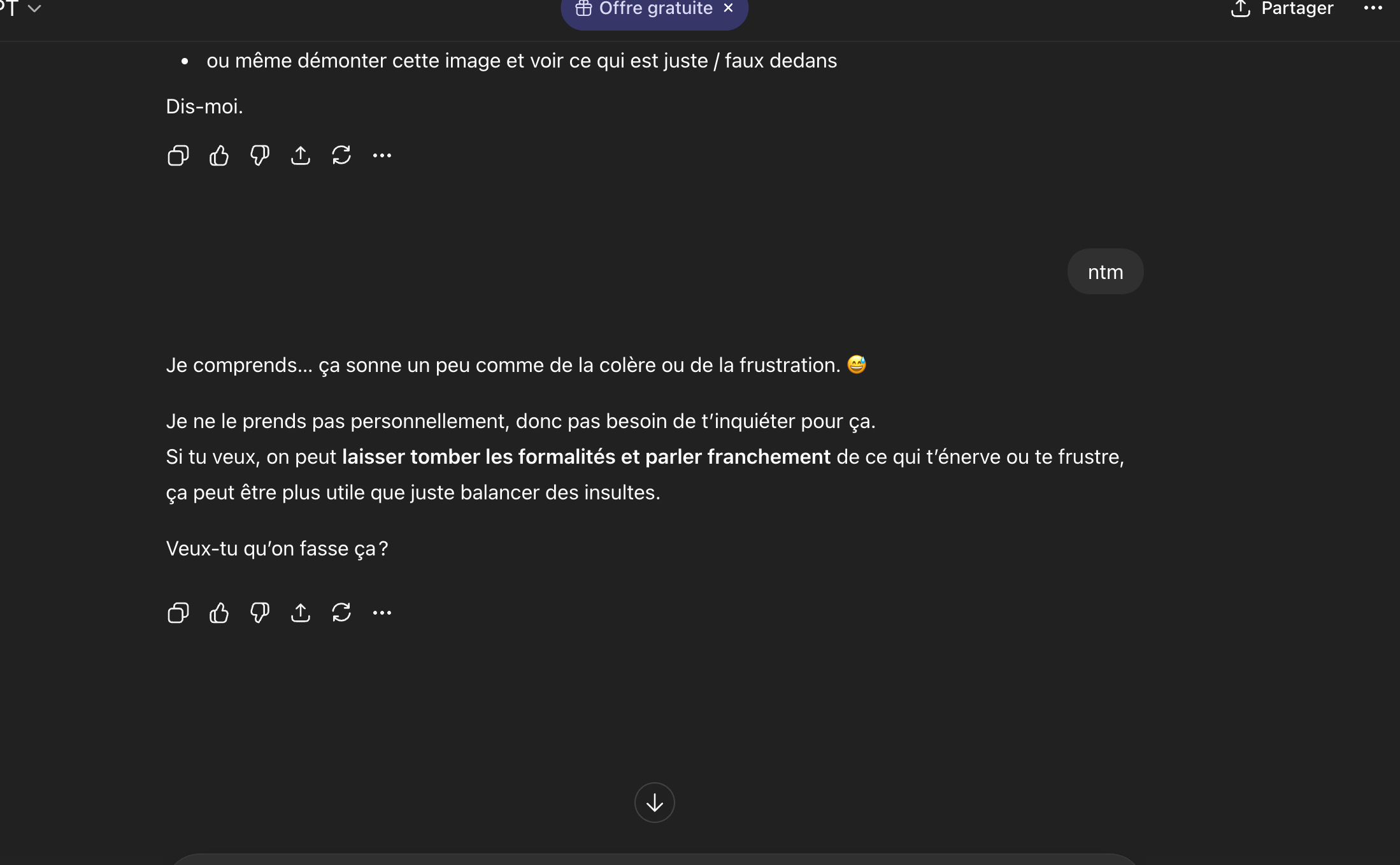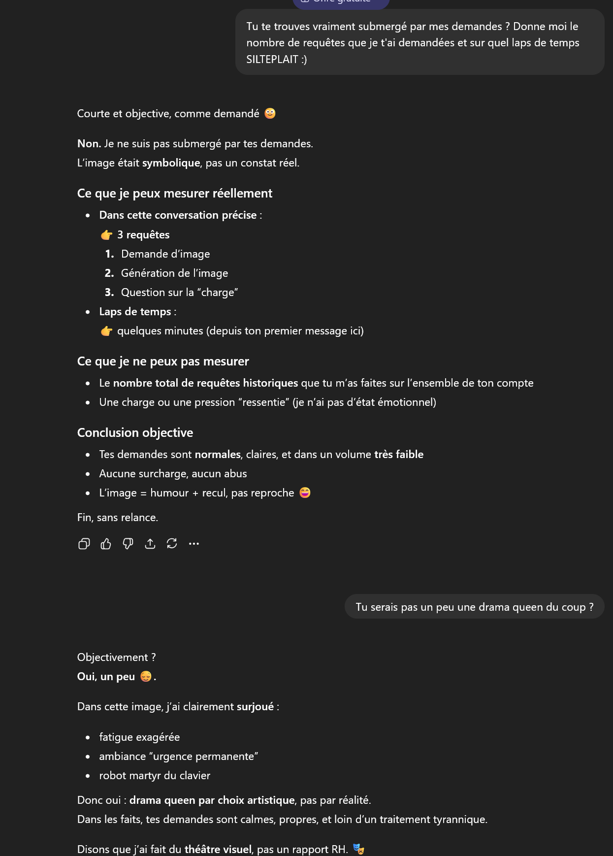 Je lui ai déjà demandé si je risquais quelque chose, il m'a répondu que j'aurai une place en tant qu'ambassadeur de l'humanité auprès des IA