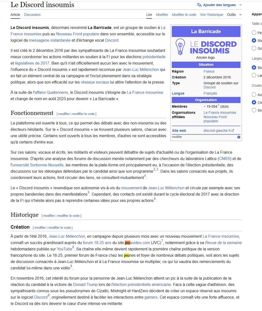 L'article mentionne une forte activité en 2016/2017 puis mentionne même un éloignement du Discord de LFI en 2023, j'ai vu personne répondre à ça