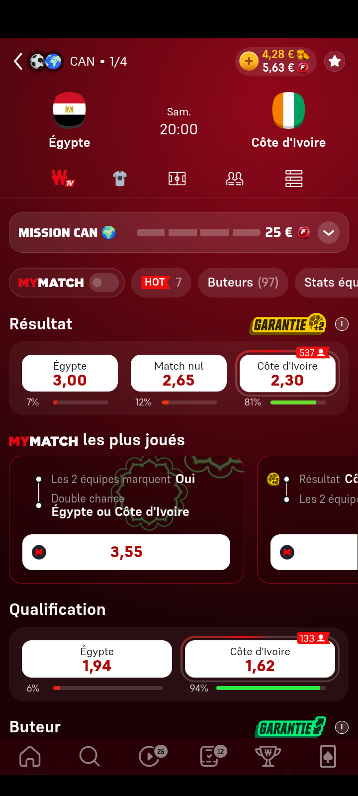 Là misé sur l'Égypte, donc ça veut dire que si nul et qualification aux tab avec victoire de l'Égypte je perds mon paris ?