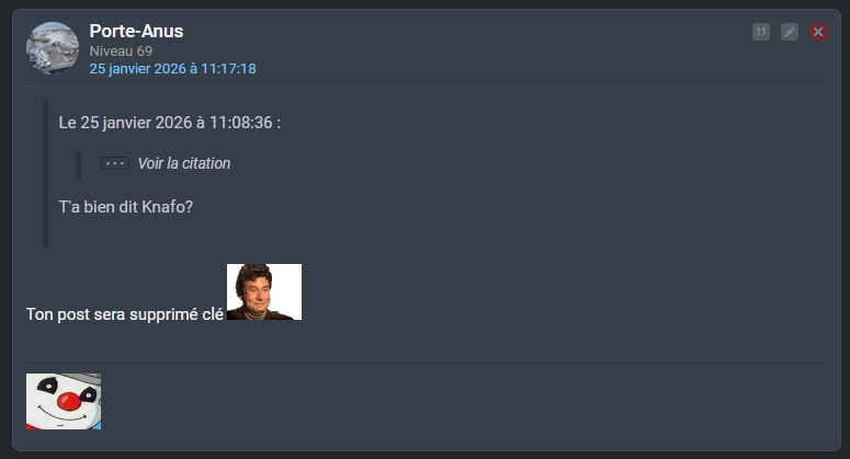 Le 25 janvier 2026 à 11:09:36 Porte-Anus a écrit :