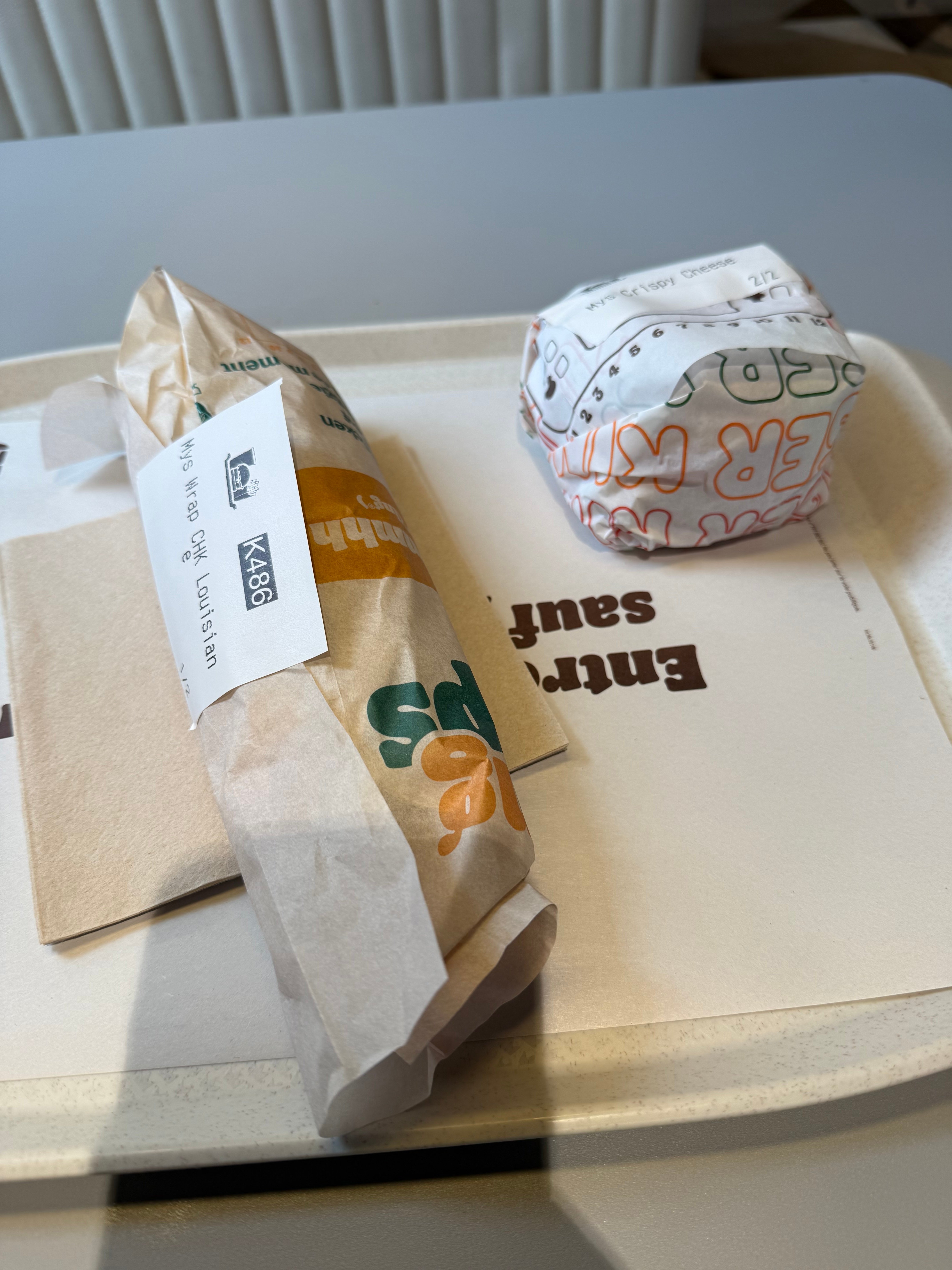 L’autre fois quand j’ai commandé au drive j’ai tellement ragé que j’ai juste pris un happy meal à 4€Enfaite elle m’a dit que c’était 5,50€ maintenant mais un seul sandwich mais donut à la place du deuxième et que c’était 7€50 avec les 2 sandwich + donuts