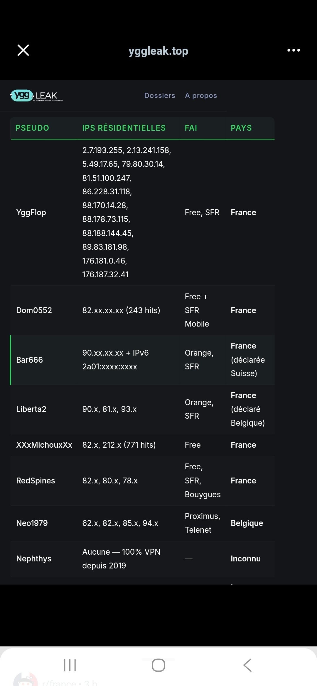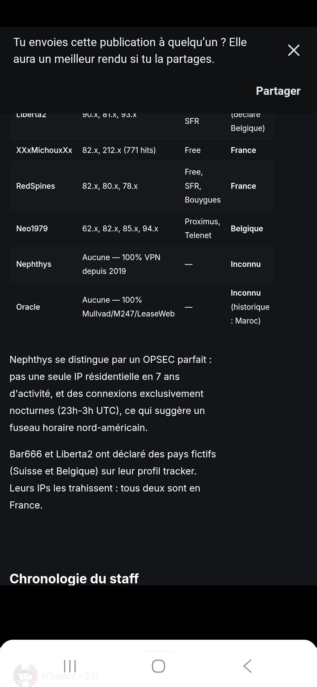 Le seul leak du staff est une ip marocaine à une date précise, tout le reste est full-vpn.