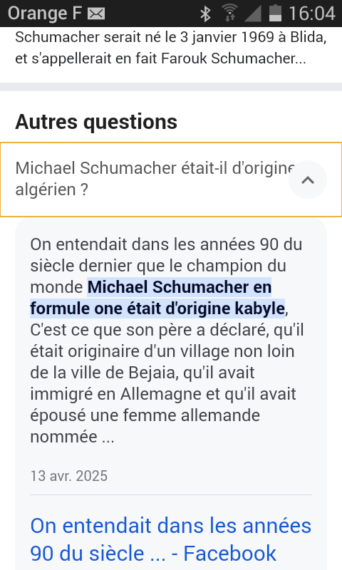 Mon tuteur de stage kabyle au lycée disait que j'étais kabyle car j'avais les yeux verts comme un kabyle et que j'étais le sosie de son voisin au bled
