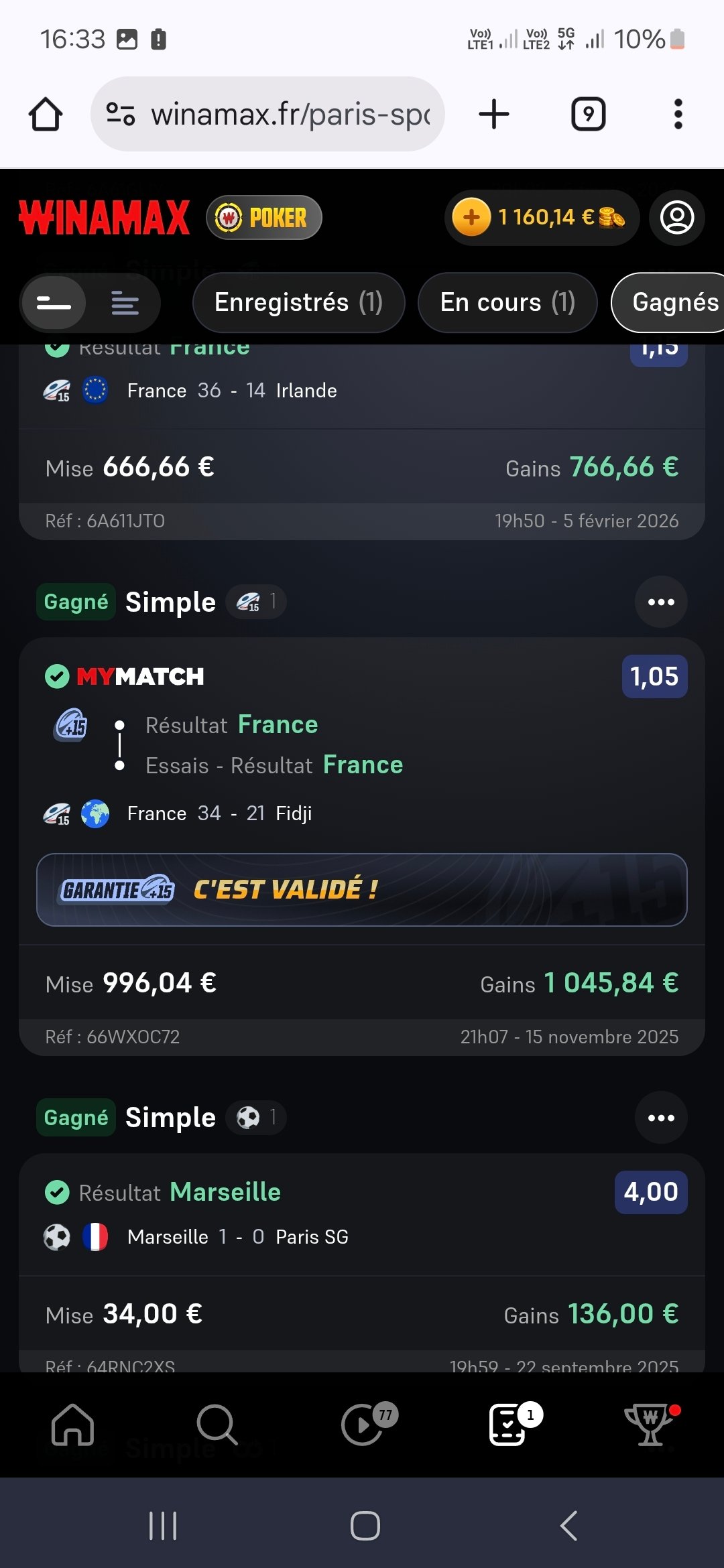 J'avais posé un paquet sur France Irlande vu que j'étais au Stade de France c'était bien drôle
