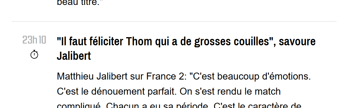 Merci au commentateur d avoir laissé les amateurs comme moi dans le suspens le plus total..