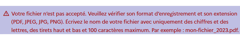 Bonjour, savez-vous comment déposer ses fichiers de carte d'identité et de justificatif de domicile ? Mes fichiers font moins de 2 Mo, sont au format PDF et respectent les règles de nom de fichier (à moins que les majuscules soient interdites ?)...