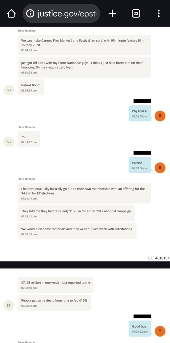 Jeffrey Epstein finance Steve Bannon qui donne des valises de CASH au RN