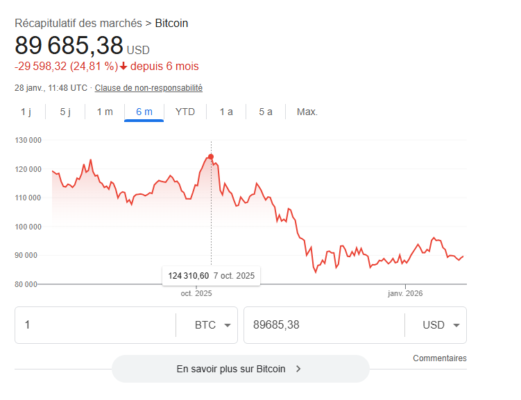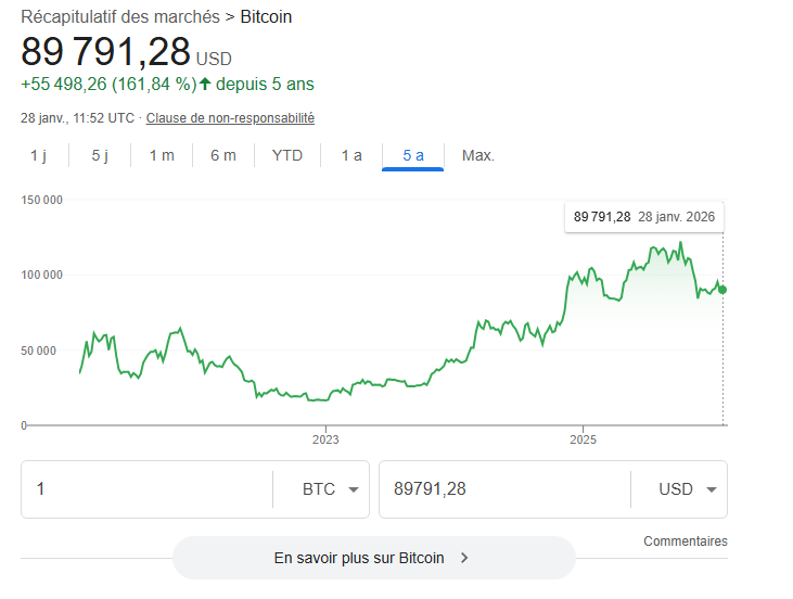 La courbe sur 1 an / 5 ans est super inquiétante, on est plus proche de la rupture à la baisse et d'une chute vertigineuse jusqu'à 20k qu'une ascension.C'est vraiment du pur pari sportif à ce niveau de miser sur le BTC.