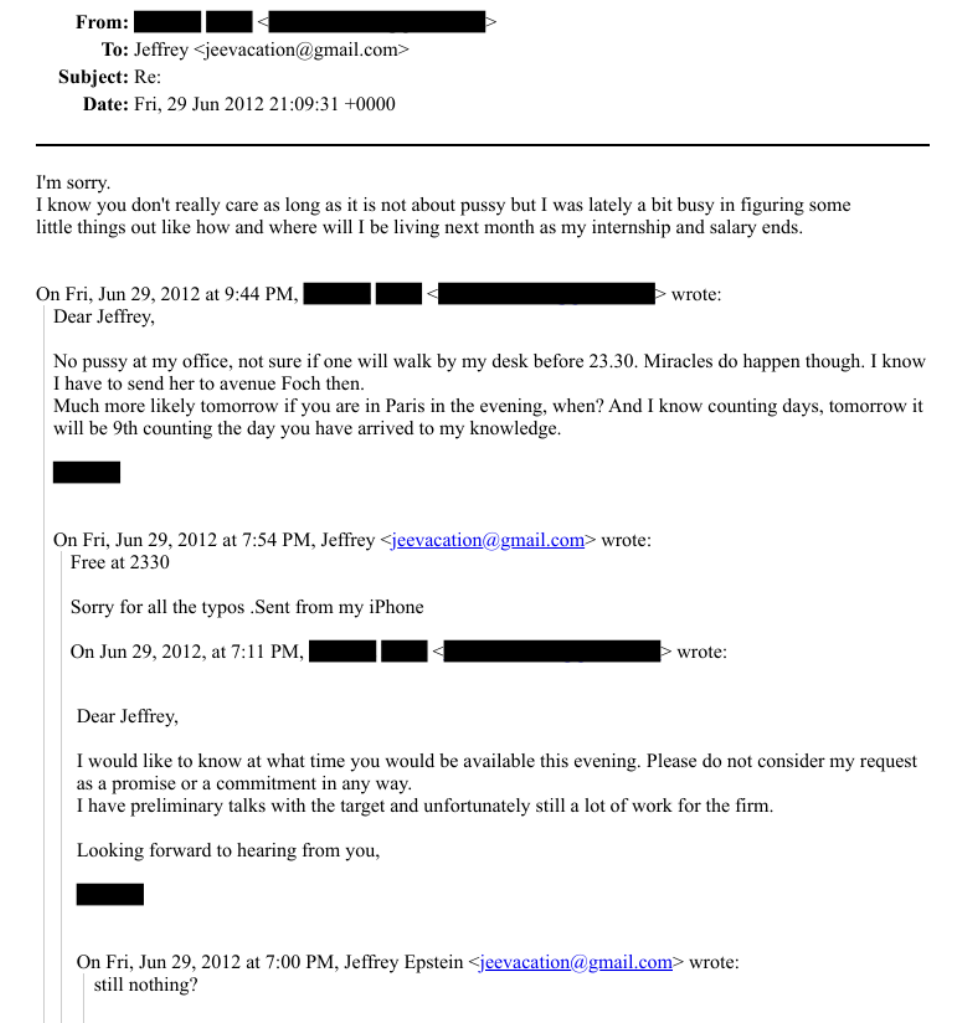 "Dear Jeffrey Dear Jeffrey" vous voyez le pattern ? Et la signature caviardée en un bloc ?