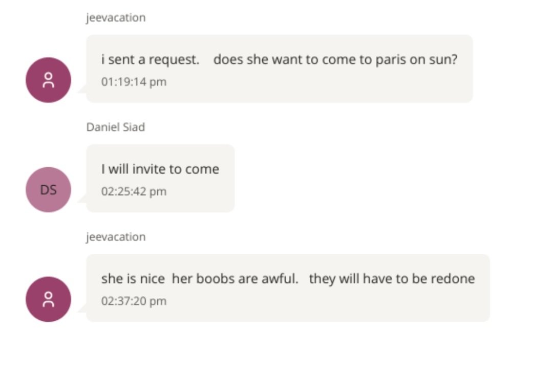"Elle est gentille, mais ses seins sont affreux. Il faudra les faire refaire." Ayaaaaa
