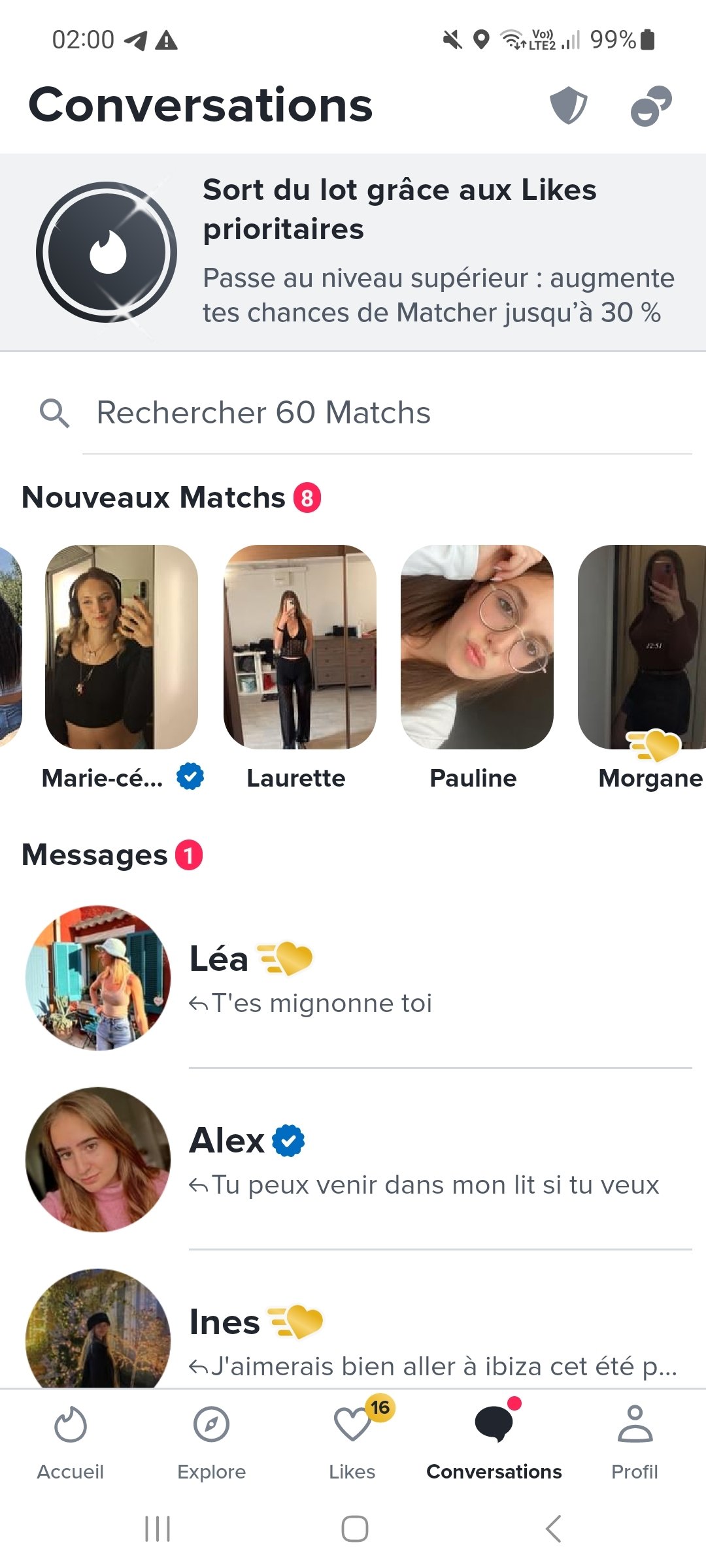 Euh 60 matchs sur tinder t'es un mega bg, j'avais essayé cette appli du démon 1 semaine 0 matchs hein...