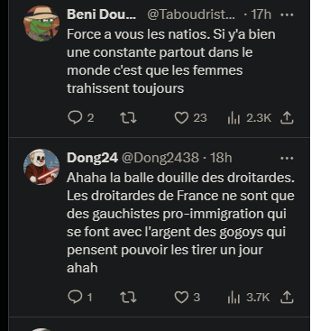 fait un bisou sur la joue d'un natio d'origine maghrébine probablement gay C'est une blague ? Les femmes trahissent toujours Dites moi que c'est de l'IA Ces p* n'ont aucune loyauté