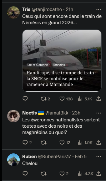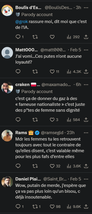 Le 06 février 2026 à 19:17:57 : fait un bisou sur la joue d'un natio d'origine maghrébine probablement gay C'est une blague ? Les femmes trahissent toujours Dites moi que c'est de l'IA Ces p* n'ont aucune loyauté