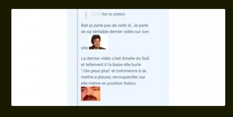 Très populaires sur le forum jeuxvideo.com, les films de Pascal OP ont ainsi souvent créé le débat. Dès 2018, un internaute signalait ainsi une scène au cours de laquelle une jeune femme hurle « J’en peux plus » avant de se mettre à pleurer et de se mettre en position fœtale sur le sol