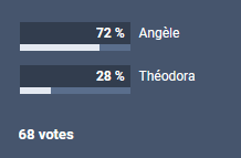Conclusion: Angèle est une chanteuse stable mais pas spécialement brillante, qui exécute à la perfection ce qu’elle fait. Theodora est plus dans l’expérimentation et n’a pas une très belle voix de base, mais elle compense par des variations de chant intéressants. Petit coup de cœur pour elle alors que je n’étais pas convaincu au départ.