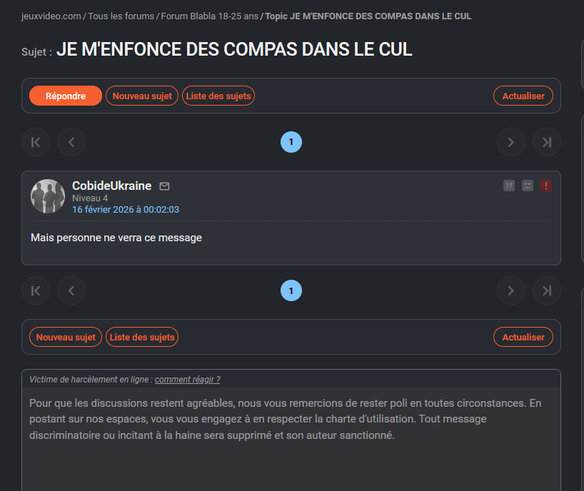 Le 16 février 2026 à 00:17:29 : Vous faites les malins mais je suis sur que vous ne seriez même pas capable d'aider une pauvre femme en détresse à réparer son moteur