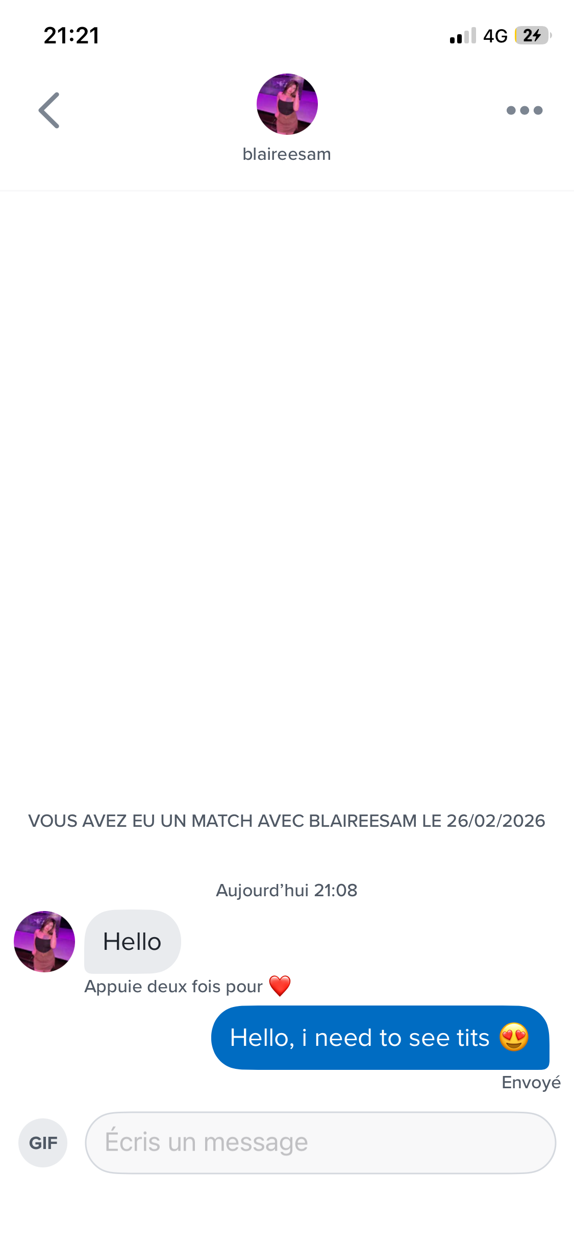 20 matchs qui ont initié la conversation, tous des 7-8/10, exactement le même profil que moi : blond, yeux clairs, go muscu (sûrement son type de mec).