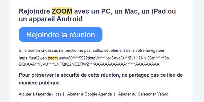 Peut-être que c'était lié à ton problèmeNon, c'était un lien vers en .exe Zoom qui lançait automatiquement la réunion