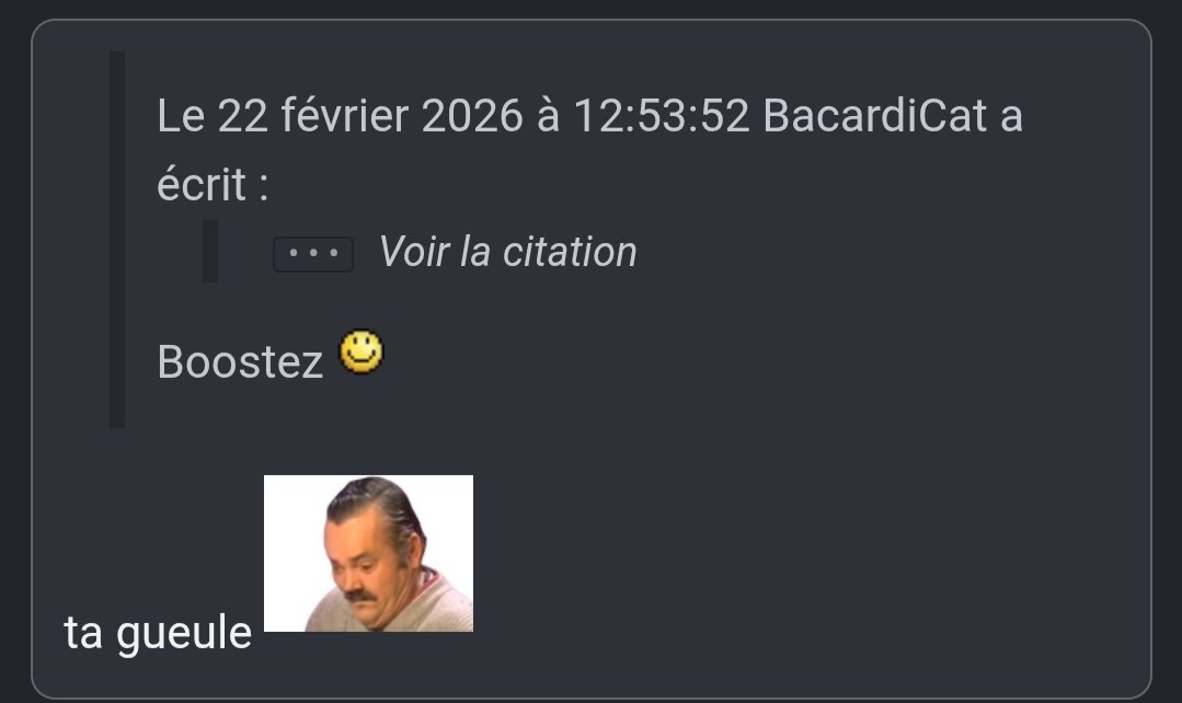 Le 22 février 2026 à 12:53:52 BacardiCat a écrit :Le 22 février 2026 à 12:53:36 :rire Boostez