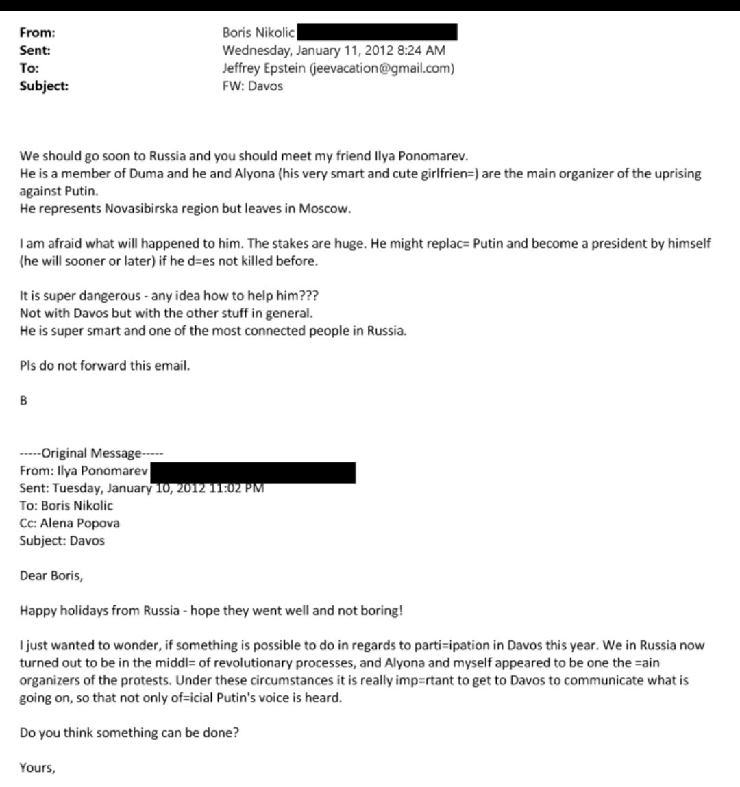 Je voulais juste savoir s'il était possible de faire quelque chose pour participer à Davos cette année. Nous nous retrouvons en Russie en plein milieu de processus révolutionnaires, et Aliona et moi nous sommes révélés être l'un des principaux organisateurs des manifestations. Dans ces circonstances, il est vraiment important de venir à Davos pour communiquer sur ce qui se passe, afin que la voix officielle de Poutine ne soit pas la seule à se faire entendre.