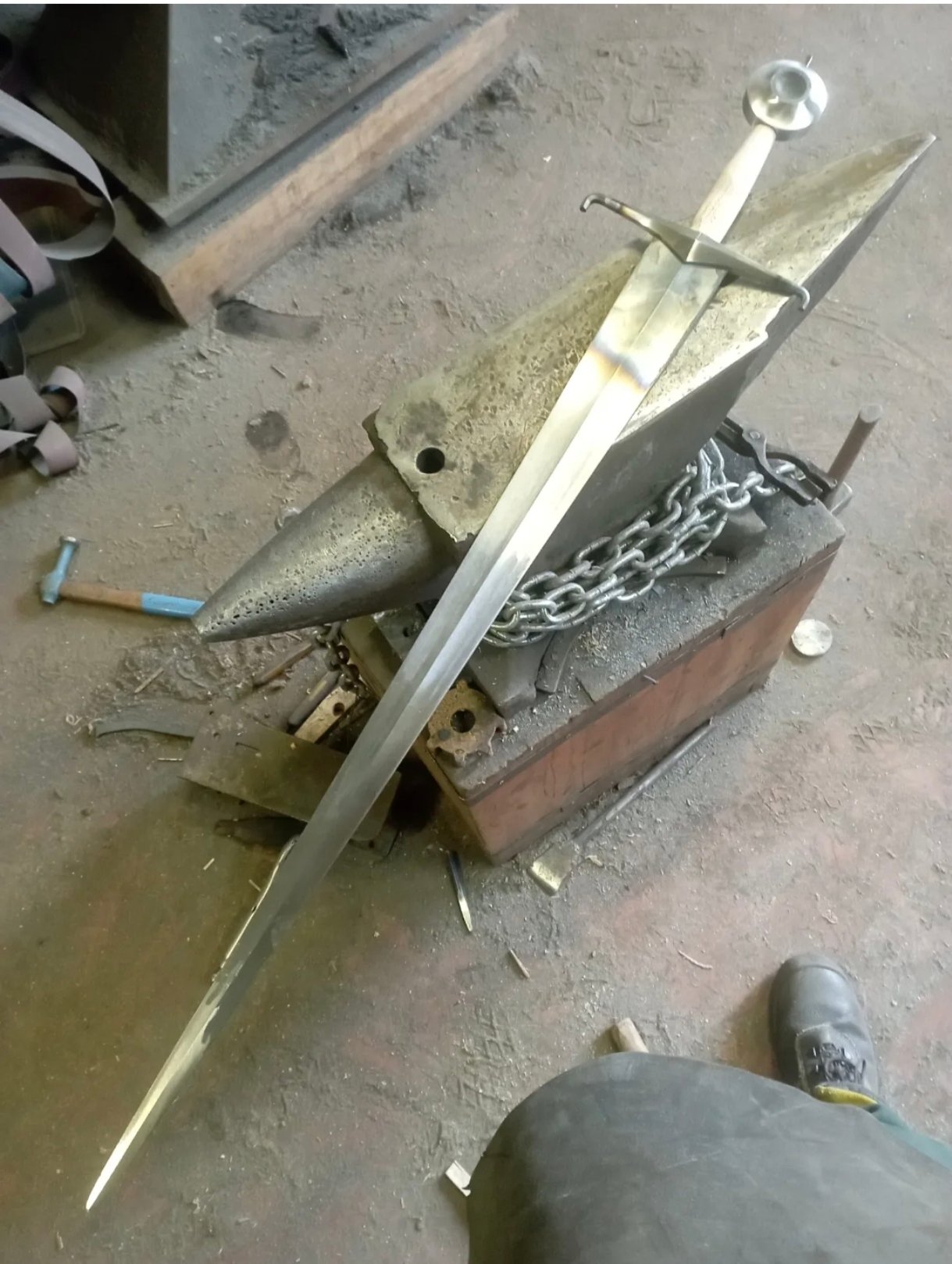 Type XV lame de section diamant a pans concaves, garde typique début 15eme, pommeau concave aussi.Plus a finir la poignée, et faire le fourreau.