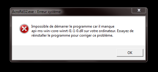 Adobe Acrobat Reader affiche ce message d'erreur à chaque fois que j'essaie d'ouvrir un fichier :