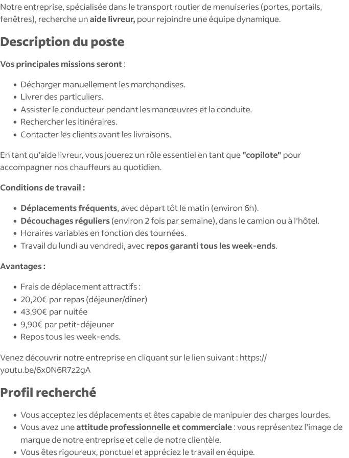 c'est ce que je pense aprés porter des portes et fenetres, chiant mais ça doit pas etre toute la journée (contrairement a preparateur de commande ou tu dois charbonner)