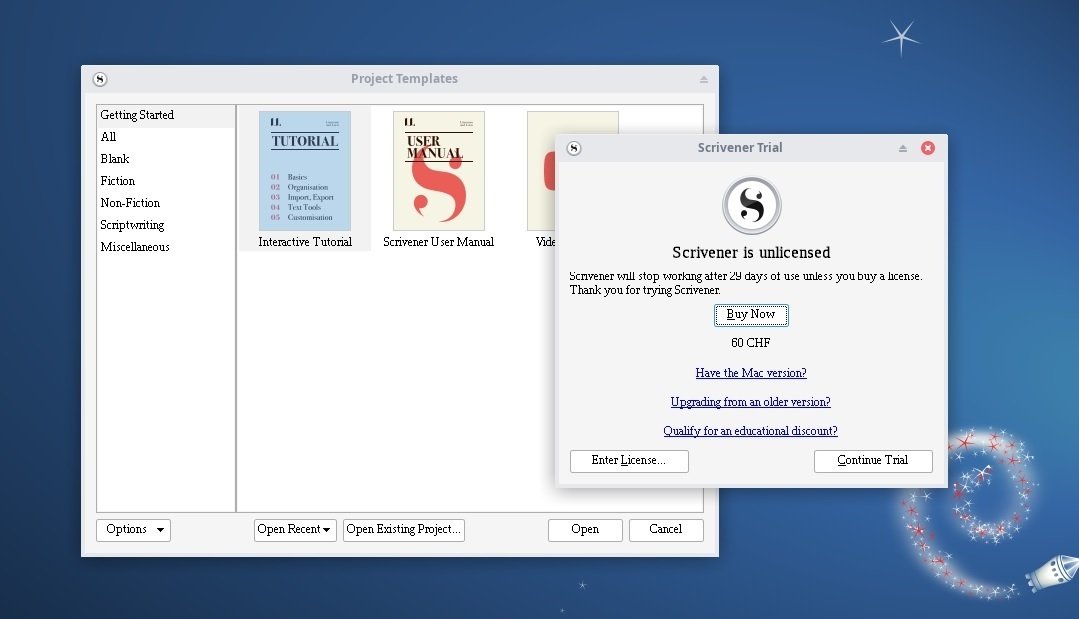 Ouf, Scrivener c'est juste pour UN hobby ! Il faudrait FL Studio, Ableton, Pro Tools, Native Instruments et les librairies, Zenology, etc... Et encore là, j'aime aussi les montages photos et vidéos, donc il faudrait Premier Pro et Creative cloud... Tu peux utiliser DaVinci resolve, mais les fichiers ne sont hélas pas compatible. Et tu n'es pas le premier brave qui te frotte à ces logiciels, hélas.